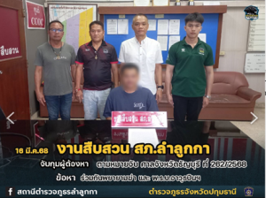 สถานที่จับกุม สภ.ลำลูกกา หมู่ 15 ต.บึงคำพร้อย อำเภอลำลูกกา จังหวัดปทุมธานี