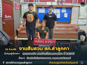 สถานที่จับกุม เพิงพักไม่มีเลขที่ คลอง 10 ต.บึงทองหลาง อำเภอลำลูกกา จังหวัดปทุมธานี