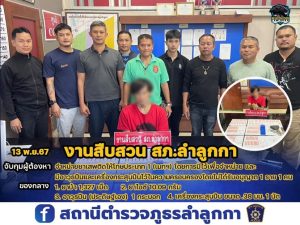 สถานที่จับกุม ห้องเช่าป้าติ๋ม หมู่ 3 ต.บึงคำพร้อย อ.ลำลูกกา จ.ปทุมธานี