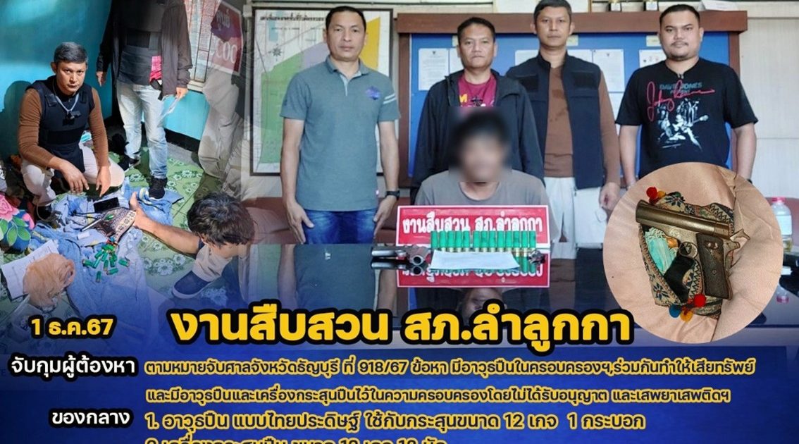 สถานที่จับกุม บ้านเลขที่ 1/1 ม.19 ต.ลำลูกกา อ.ลำลูกกา จ.ปทุมธานี