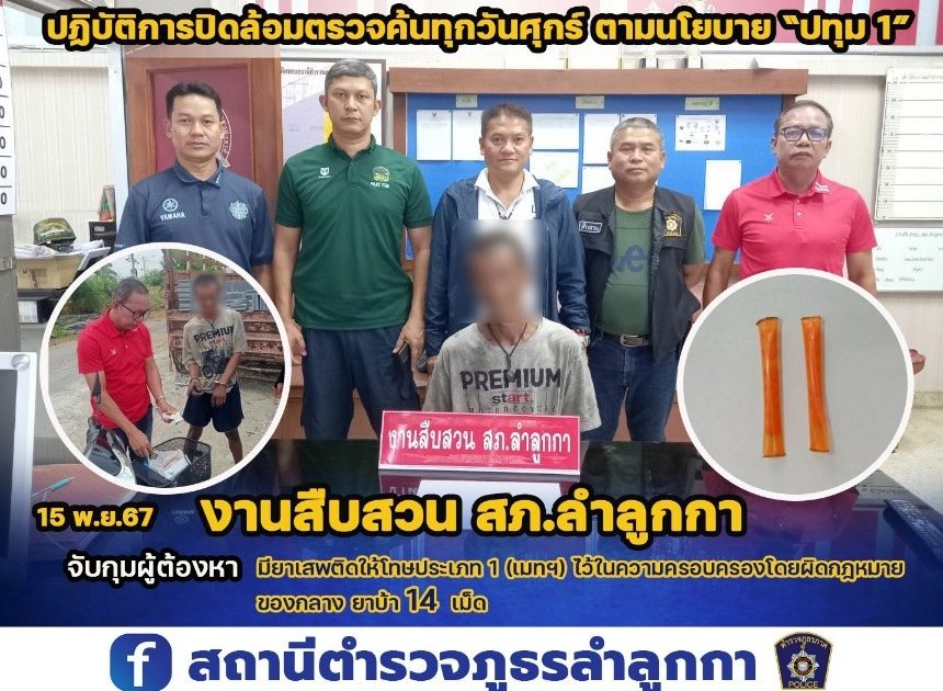 สถานที่จับกุม ห้องเช่า หมู่ 9 ต.ลำลูกกา อ. จ.ปทุมธานี