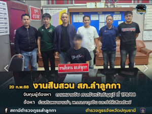 สถานที่จับกุม หน้า สภ.ลำลูกกา ม.15 ต.บึงคำพร้อย อ.ลำลูกกา จ.ปทุมธานี