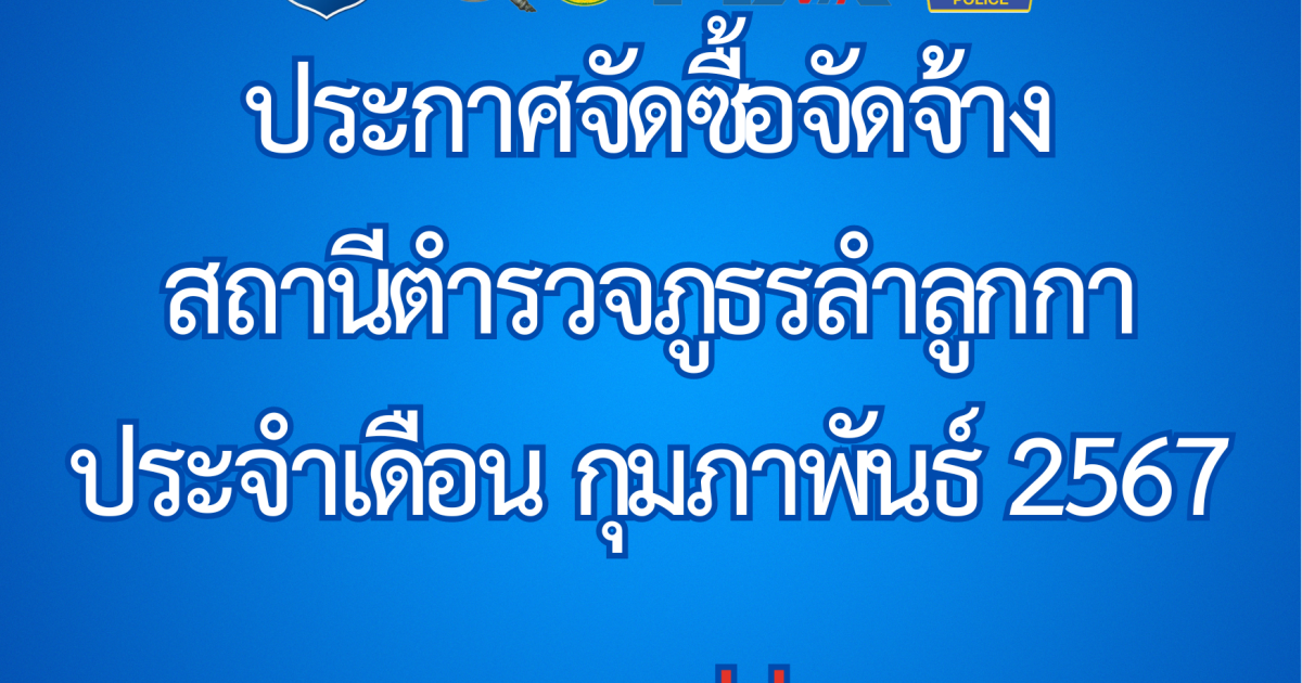 ประกาศการจัดซื้อจัดจ้างเดือน กุมภาพันธ์ 2567 28 กุมภาพันธ์ 2567 โดย admin / ข่าวจัดซื้อจัดจ้าง,งานการเงินและพัสดุ ยอดการเช้าชม : 528 ประกาศสถานีตำรวจภูธรลำลูกกา เรื่อง ประกาศผู้ชนะการเสนอราคาจัดซื้อน้ำมันเชื้อเพลิง เพื่อใช้ในภารกิจป้องกันปราบปรามอาชญากรรม โดยวิธีเฉพาะเจาะจง เดือน กุมภาพันธ์ 2567 ประกาศสถานีตำรวจภูธรลำลูกกา เรื่อง ประกาศผู้ชนะการเสนอราคาจัดซื้อพัสดุสำนักงาน เพื่อใช้ในภารกิจของสถานีตำรวจลำลูกกา โดยวิธีเฉพาะเจาะจง เดือน กุมภาพันธ์ 2567