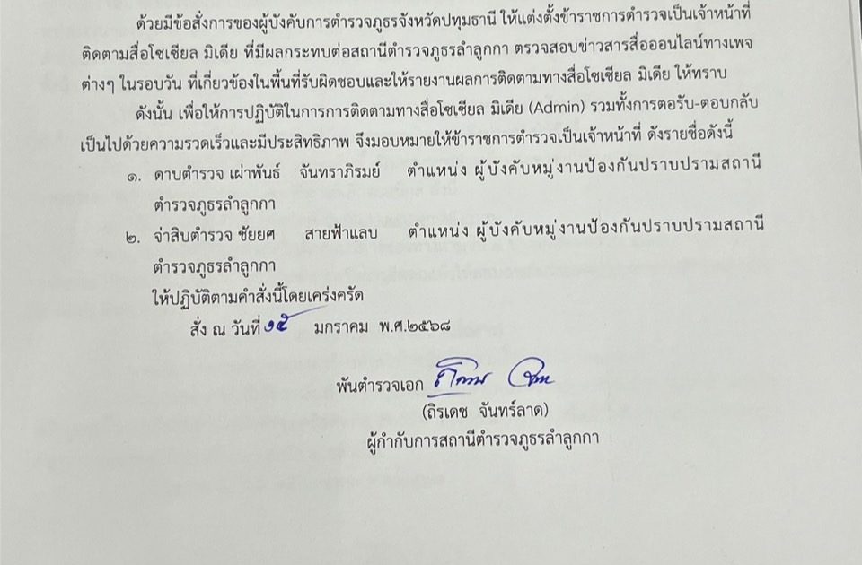ประกาศ ให้ข้าราชการตำรวจเป็นเจ้าหน้าที่ติดตามสื่อโซเซียล มิเดีย