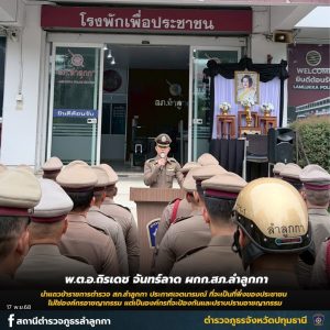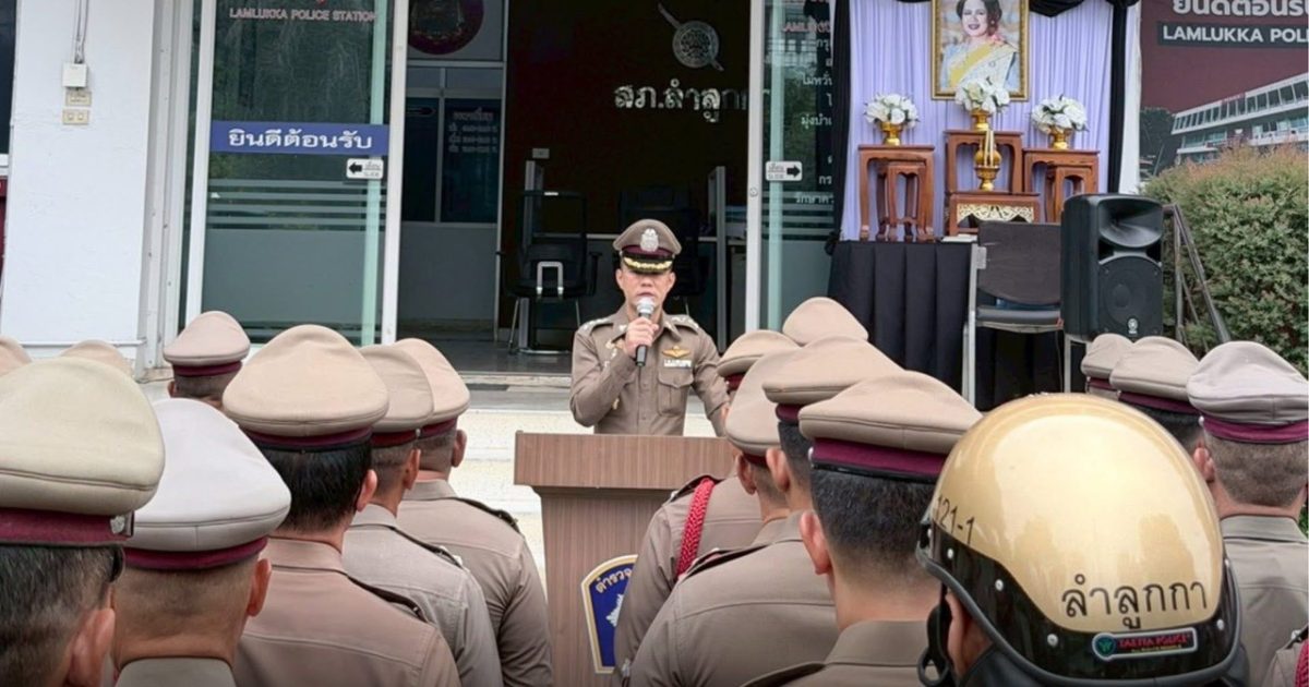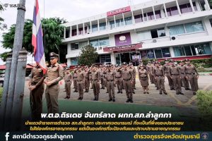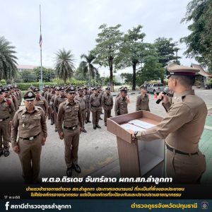 วันนี้ (17 พ.ย.68) เวลา 08.00 น. พ.ต.อ.ถิรเดช จันทร์ลาด ผกก.สภ.ลำลูกกา นำแถวข้าราชการตำรวจ สภ.ลำลูกกา เคารพธงชาติ, สวดมนต์ไหว้พระ, ยืนสงบนิ่ง 93 วินาที เพื่อเป็นการแสดงความน้อมรำลึกถึงพระมหากรุณาธิคุณของ สมเด็จพระนางเจ้าสิริกิติ์ พระบรมราชินีนาถ พระบรมราชชนนีพันปีหลวง , กล่าวคำปฏิญาณและอุดมคติตำรวจ พร้อมนำข้าราชการตำรวจประกาศเจตนารมณ์ที่จะเป็นที่พึ่งของประชาชน ไม่ใช่องค์กรอาชญากรรม แต่เป็นองค์กรที่จะป้องกันและปราบปรามอาชญากรรม