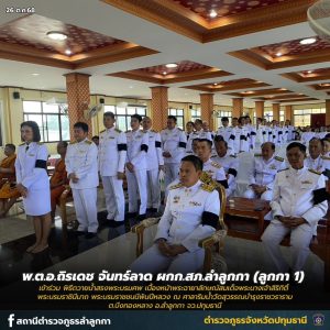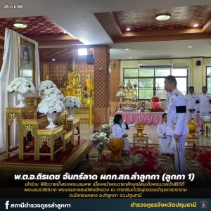 26 ต.ค.68 เวลา 13.30 น. พ.ต.อ.ถิรเดช จันทร์ลาด ผกก.สภ.ลำลูกกา และข้าราชการตำรวจ สภ.ลำลูกกา พร้อมด้วย คณะสงฆ์ หัวหน้าส่วนราชการ รัฐวิสาหกิจ องค์กรปกครองส่วนท้องถิ่น พนักงานราชการ ลูกจ้างในสังกัด กำนัน ผู้ใหญ่บ้านและประชาชนในพื้นที่ อ.ลำลูกกา เข้าร่วมพิธีถวายน้ำสรงพระบรมศพ เบื้องหน้าพระฉายาลักษณ์สมเด็จพระนางเจ้าสิริกิติ์ พระบรมราชินีนาถ พระบรมราชชนนีพันปีหลวง ณ ศาลาริมน้ำวัดสุวรรณบำรุงราชวราราม ต.บึงทองหลาง อ.ลำลูกกา จว.ปทุมธานี โดยมีนายพรศักดิ์ นาคปน
