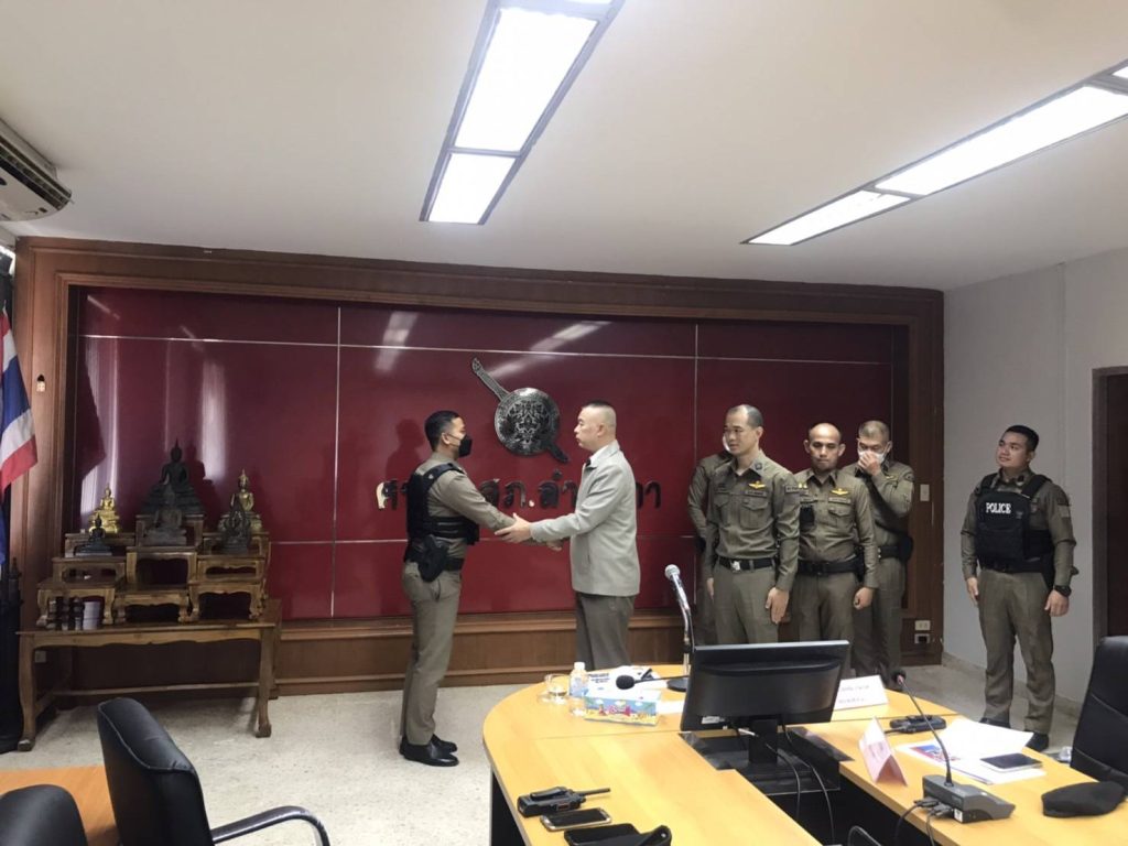 วันนี้(18 ม.ค.67) เวลา 10.40 น. พล.ต.ต.โชคชัย งามวงศ์ รอง ผบช.ภ.1 มาตรวจเยี่ยมและมอบรางวัลให้แก่เจ้าหน้าที่สายตรวจ ที่สามารถจับกุมผู้ต้องหา 1 ราย พร้อมของกลาง(ปืนไทยประดิษฐ์ 1 กระบอก, เครื่องกระสุนปืน ขนาด .38 จำนวน 1 นัด) เมื่อวันที่(20 ธ.ค.66) เวลา 21.00 น. ริมถนนลำลูกกา คลอง 8 ม.5 ต.ลำลูกกา อ.ลำลูกกาฯ พร้อมทั้งนำวัตถุดิบมาร่วมสนับสนุน ตามโครงการ “อาหารกลางวันสถานีตำรวจ ในสังกัด ตำรวจภูธรภาค 1” เพื่อเป็นขวัญกำลังใจในการปฏิบัติหน้าที่ ณ ศปก.สภ.ลำลูกกา โดยมี พ.ต.อ.ถิรเดช จันทร์ลาด ผกก.สภ.ลำลูกกา, พ.ต.ต.ไตรเภท รัฐมนตรีสวป.สภ.ลำลูกกา และเจ้าหน้าที่ที่เกี่ยวข้องเข้าร่วม
