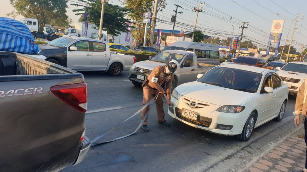 ขณะเจ้าหน้าที่ตำรวจจราจร สภ.ลำลูกกา ร.ต.ต.กำพล เพ็งศรี รอง สวป.สภ.ลำลูกกา ออกตรวจในพี้นที่ถนนลำลูกกาพบรถเก๋งจอดเสียกลางถนนจึงได้เข็นรถเข้าข้างทางและให้การช่วยเหลือสอบถามพบว่ารถมีปัญหาระบบเครืองยนต์เจ้าหน้าที่จึงให้การช่วยเหลือ หารถมาลากจุงไปอู่ซ่อม