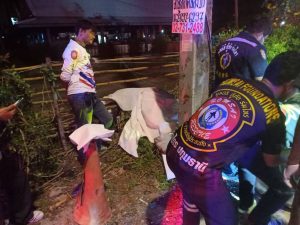 5) สรุปสาเหตุที่เกิดอุบัติเหตุ จากการสอบถามประชาชนที่เห็นเหตุการในที่เกิดเหตุทราบว่า ผู้เสียชีวิตทั้งสองได้ขับรถมาด้วยความเร็วและในขณะขับรถซ้อนท้ายจักรยานยนต์มาด้วยกันผู้ขับกับผู้โดยสารได้มีการทะเลาะกัน พอถึงที่เกิดเหตุผู้ขับได้เอื้อมมือไปตบผู้โดยสารจึงทำให้รถเสียหลักชนเสาร์ไฟข้างถนนหัวกระเเทกเข้ากับเสาร์ไฟทำให้เสียชีวิตในที่เกิดเหตุทั้งคู่