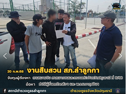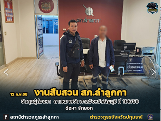 วันที่ 20 ก.พ.2568 จับกุม นายแฮ่ม หมายจับ ข้อหา ร่วมกันพยายามฆ่าฯ สถานที่จับกุม หน้า สภ.ลำลูกกา ม.15