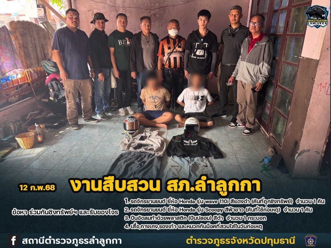 วันที่ 7 ก.พ.2568 จับกุม นายเบล หมายจับ ข้อหา ชิงทรัพย์ ห้างเพชรทองออโรร่า สาขาบิ๊กซีลำลูกกา คลอง 5