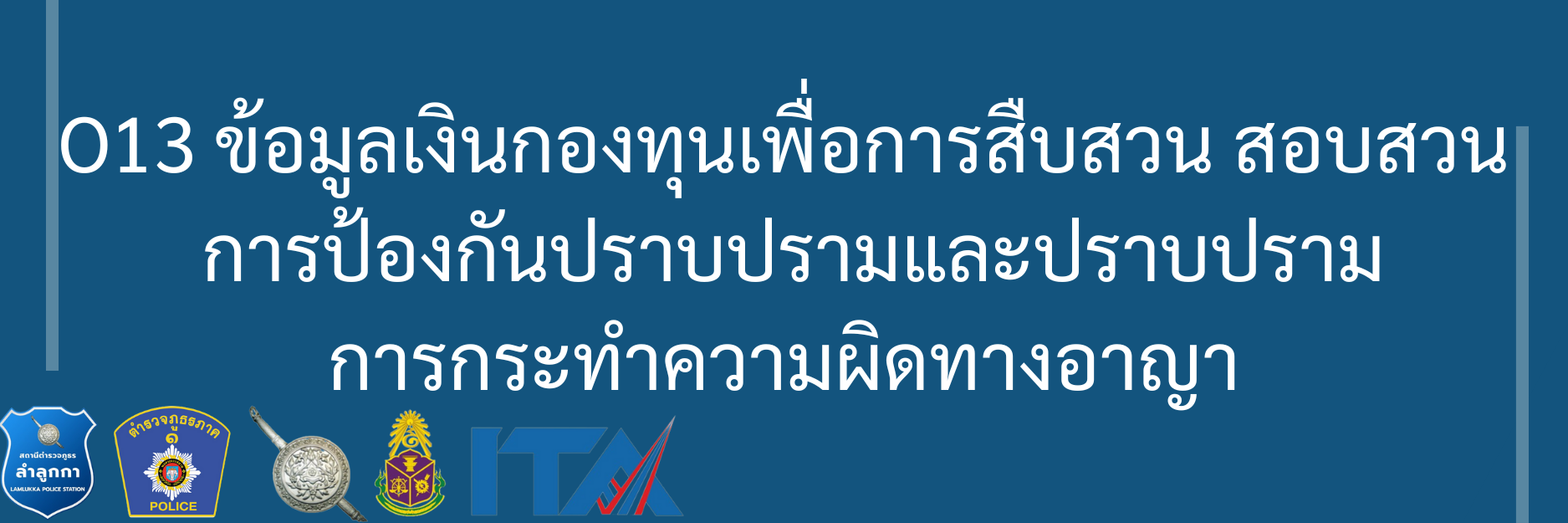 O13 ข้อมูลเงินกองทุนเพื่อการสืบสวน สอบสวนการป้องกันและปราบปรามการกระทำความผิดทางอาญา