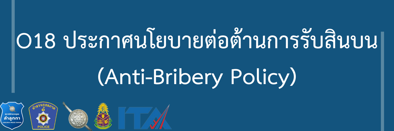 O18 ประกาศนโยบายต่อต้านการรับสินบน (Anti-Bribery Policy) และนโยบายไม่รับของขวัญและของกำนัลทุกชนิด (No Gift Policy) จากการปฏิบัติหน้าที่